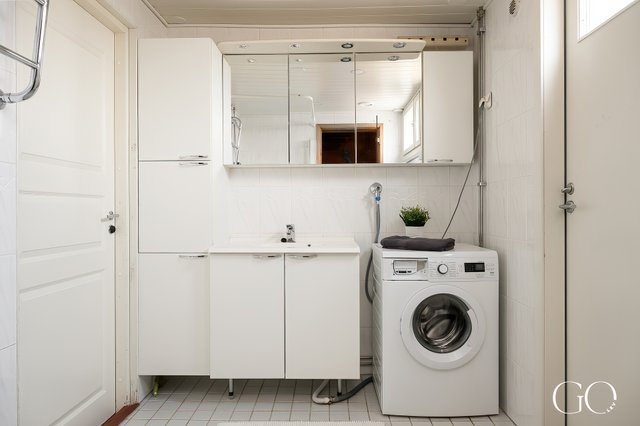 - Pesuhuoneen yhteydessä kaappitilaa.