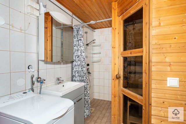 Asunnossa on oma sauna, joka on rakennettu jälkikäteen, tarjoten rentouttavia hetkiä kiireisen päivän päätteeksi. Kylpyhuone on varustettu lattialämmityksellä, mikä lisää asumismukavuutta. Säilytystilaa on runsaasti, sillä asunnossa on vaatehuone ja häkkivarasto.