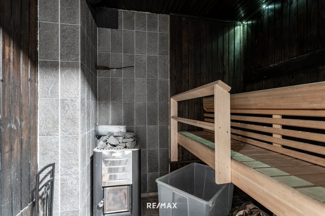 Takkahuoneessa on tunnelmallinen takka, ja tila soveltuu erinomaisesti esimerkiksi työtilaksi, sillä siellä on wc, sekä oma sisäänkäynti. Sauna tarjoaa rentouttavat löylyt puukiukaalla.