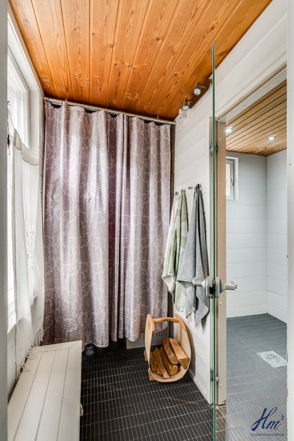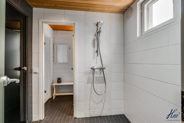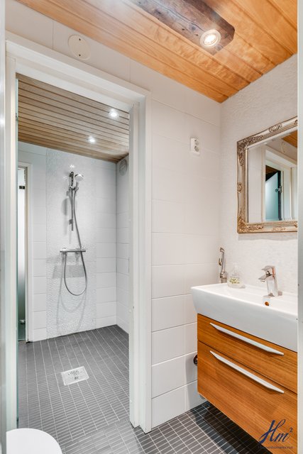 - Alakerran pesuhuone, on kokonaan laattaa ja lattialämmitys.