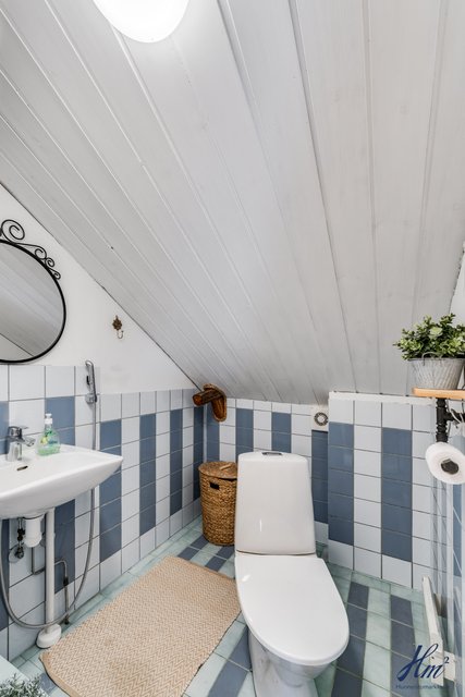 - Alakerran erillinen wc kokonaan laattaa, sekä lattialämmitys, pesuallas ja peili, sekä bidee-suihku. Yläkerran wc:n lattia laattaa, sekä seinät osin laattaa, pesuallas peili ja bidee-suihku.
