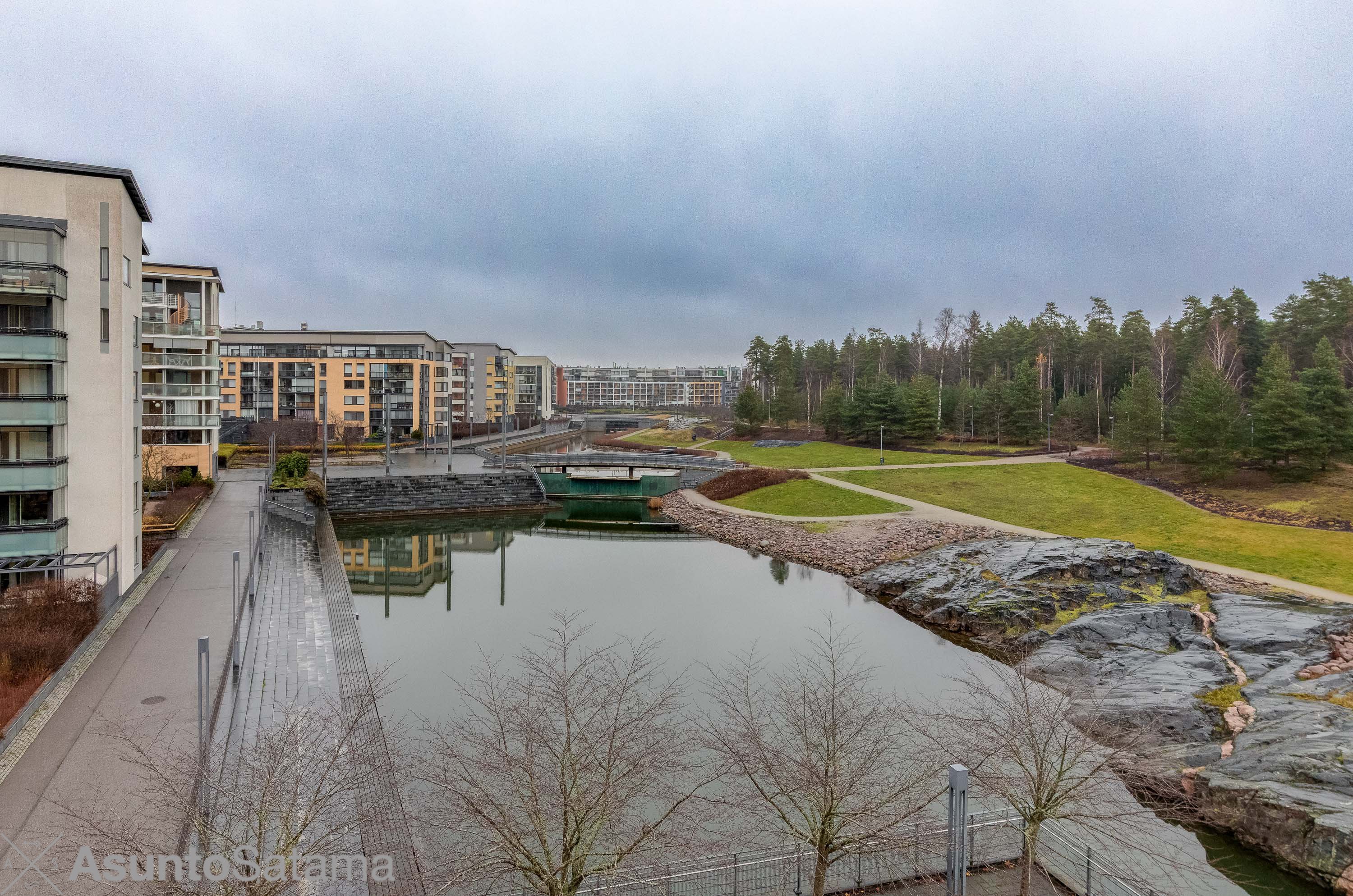 Selkeä pohjaratkaisu, oma sauna, lasitettu parveke kanavan "päällä" näkymien lisäksi ovat vahvuuksia, joilla tämä muuttovalmis pikkukoti tulee valloittamaan katsojien sydämet.