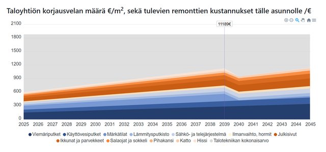 RT-korttiin perustuva Korjausvelkalaskurin raportti taloyhtiöön tulevista remonteista ja niiden vaikutuksesta asumiskustannuksiin on mukavaa luettavaa.