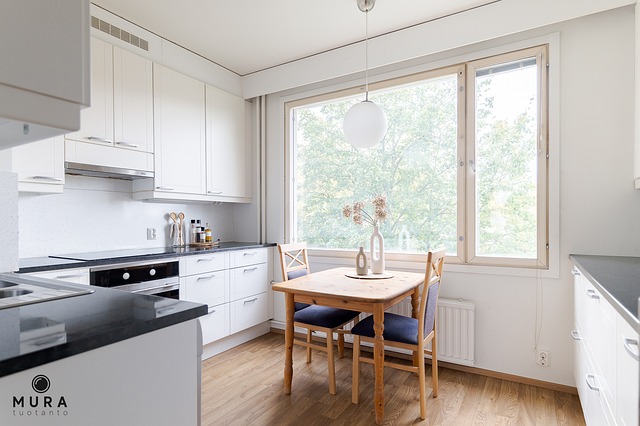 - Tyylikäs valkoinen keittö, jossa induktioliesi, liesituuletin, erillisuuni, astianpesukone, jääkaappi/ pakastin. Keittiössä tilaa ruokailuryhmälle.