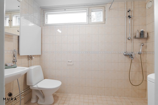 - Kylpyhuoneessa suihku, wc-istuin, allas, peilikaappi, pesukoneliitäntä.