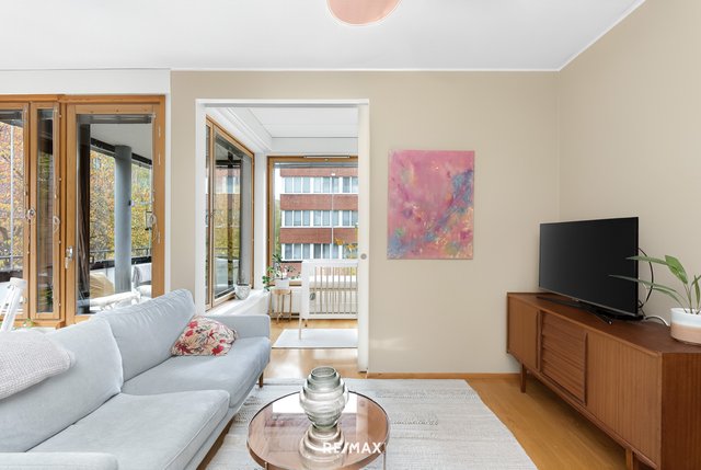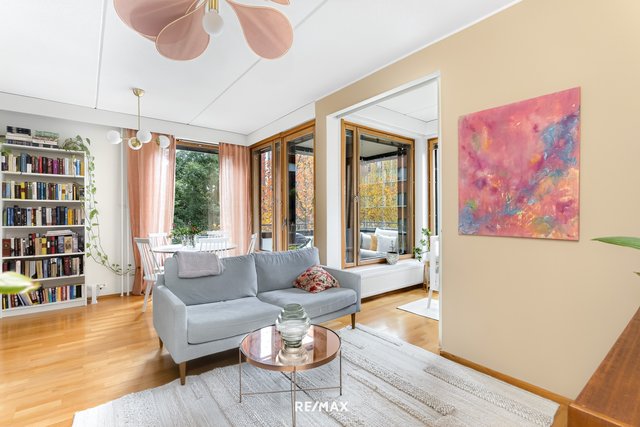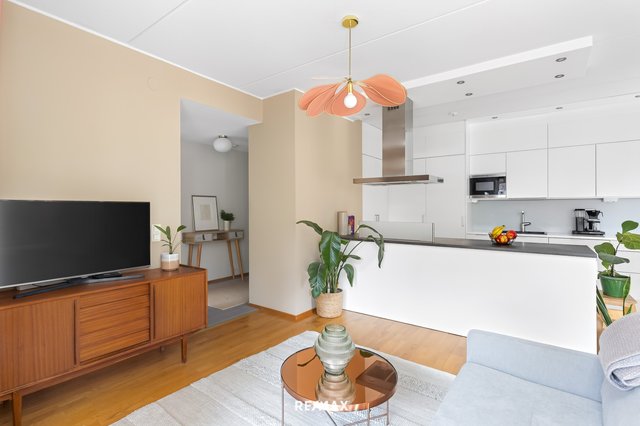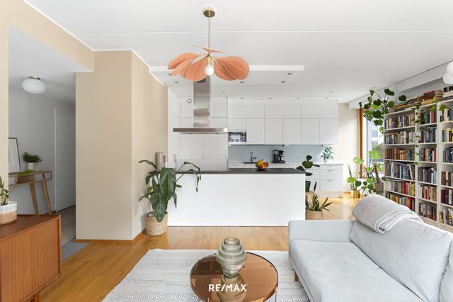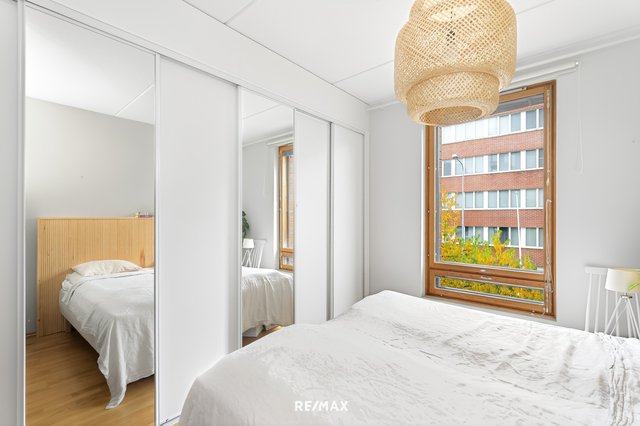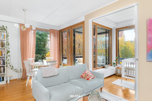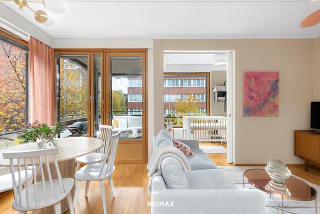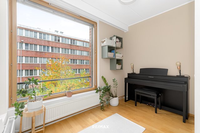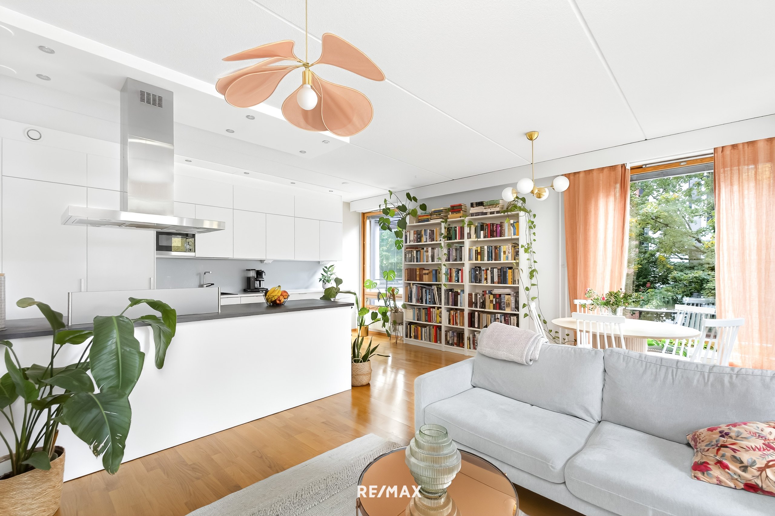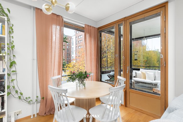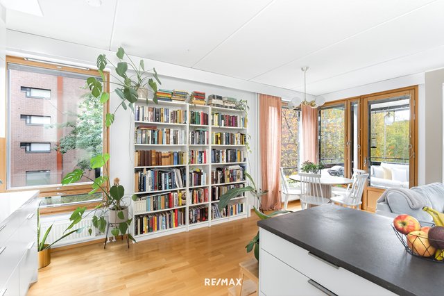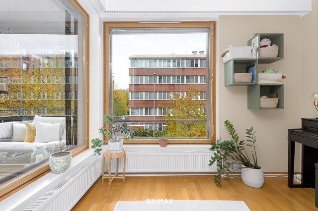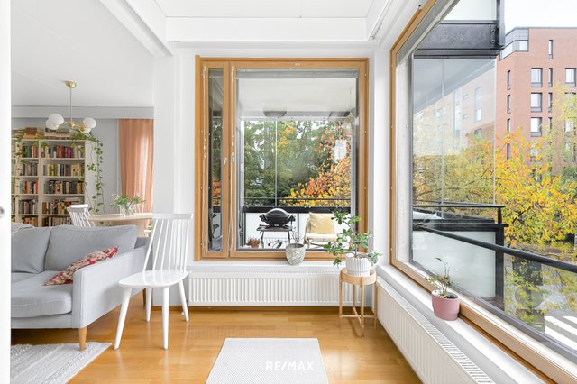 Tässä kulmahuoneistossa on paljon isoa ikkunapintaa ja valoa. Asunnossa on kaksi makuuhuonetta, joista toinen yhdistyy helposti olohuoneen jatkoksi. Avokeittiö ja olohuone muodostavat avaran ja tilavan oleskelutilakokonaisuuden, jossa voi yhdessä viettää aikaa kun kokkailee. Parkettilattiat ja puiset ikkunankarmit tuovat lämpöä ja kotoisuutta asuntoon. Keittiö ja iso saareke ovat täydellisesti uusittu vuonna 2017 ja sen suunnitteluun ja käytännöllisyyteen on todella panostettu.