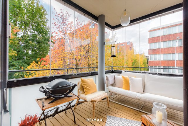 Parveke on kesäisin kuin toinen olohuone. Sinne mahtuu hyvin sohva-/ ruokailuryhmä ja grilli. Makuuhuoneessa ja eteisessä on tilavat kaapistot. Kylpyhuoneen yhteydessä on viihtyisä sauna.