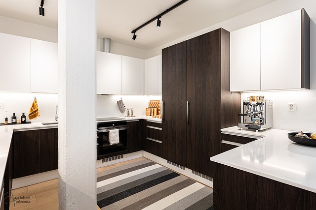 - Kaapistot, integroidut jääkaappi, pakastin ja astianpesukone. Kalustemikro, induktiotaso, kiertoilmauuni. Työtasot komposiittia, välitilassa valkoisella taustamaalattu optiwhite-lasi. Tammilautaparketti.