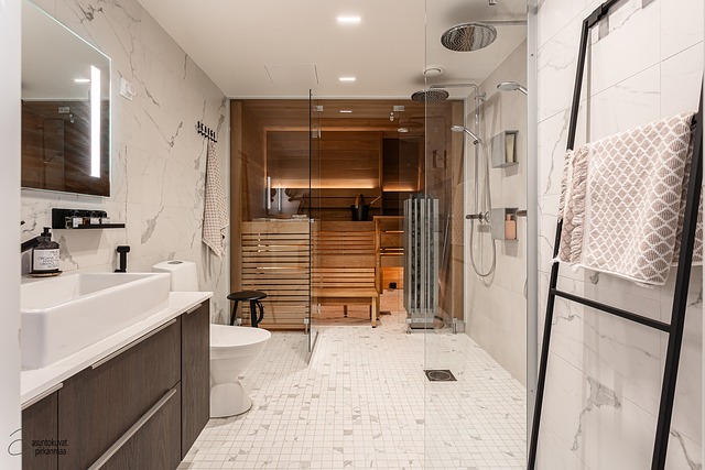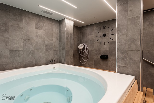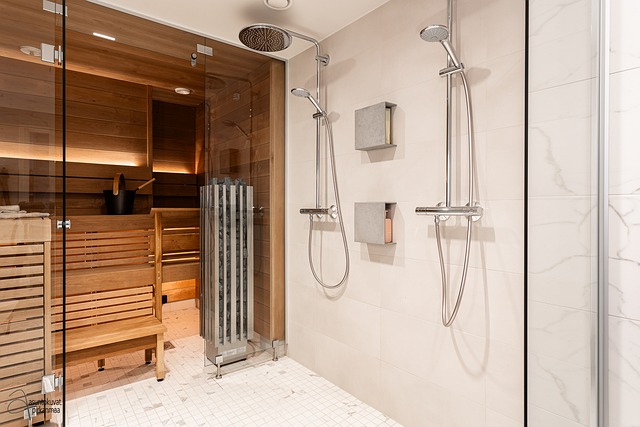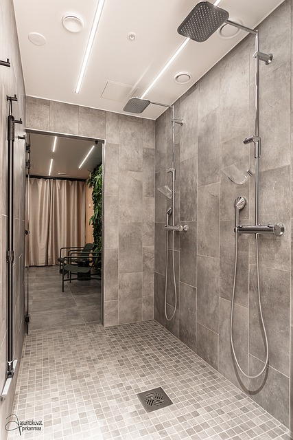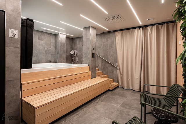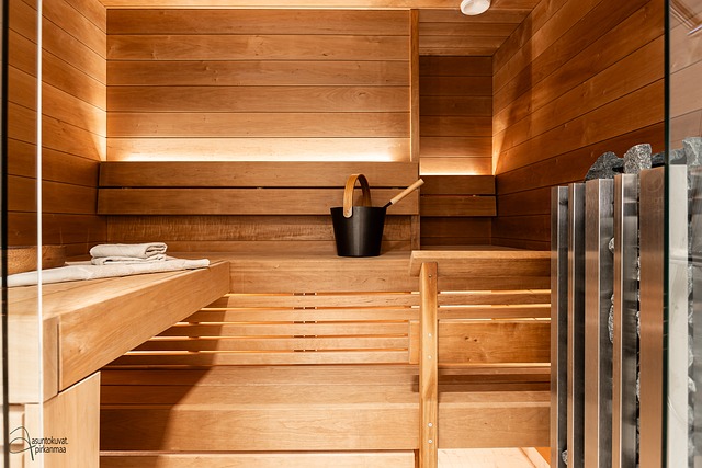 - Sähkökiuas, seinät paneloitu/lasia. Lattia laatoitettu.