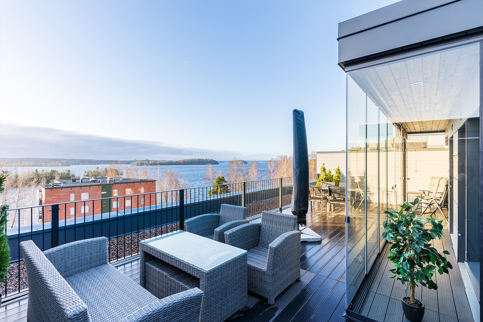 Nyt tarjolla harvinaislaatuisen ihana asunto sinulle, joka arvostat 59,5 m2:n kattoterassia loistavilla järvinäkymillä.