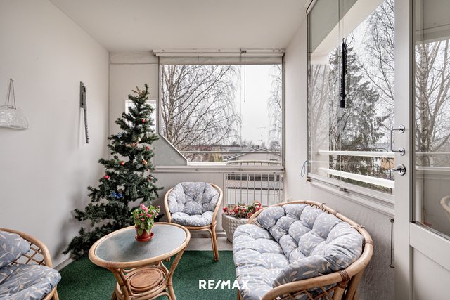 Liikenneyhteydet ovat erinomaiset: lähin bussipysäkki ja Tikkurilan juna-asema ovat kävelyetäisyydellä, joten liikkuminen on vaivatonta. Alueella on useita kouluja ja päiväkoteja, mikä tekee tästä kodista loistavan valinnan myös perheille.