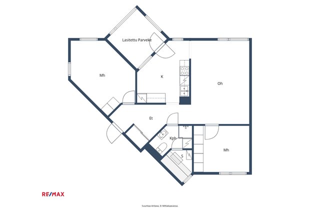 3h + keittiö + kph ja sauna + parveke
