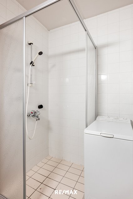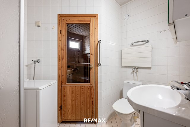 - WC-istuin, suihkuseinä, pesukoneliitäntä, lattialämmitys, peilikaappi, ja allaskaappi