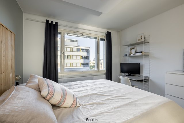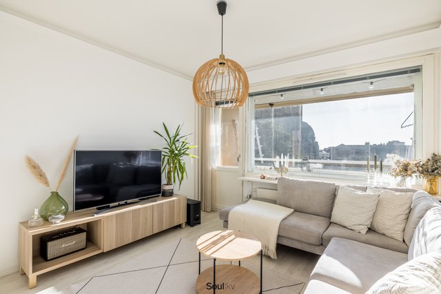 Tämä toiseksi ylimmän kerroksen läpitalon huoneisto tarjoaa toimivan pohjaratkaisun, ajattoman tyylin ja upeat näkymät. Moderni keittiö sekä kylpyhuone, vaatehuone ja lasitettu parveke kauniilla näkymillä Kallion kirkolle tekevät asumisesta käytännöllistä ja miellyttävää. Muuttovalmis upea kokonaisuus rauhallisessa hissitalossa, aivan Kallion kirkon kupeessa.