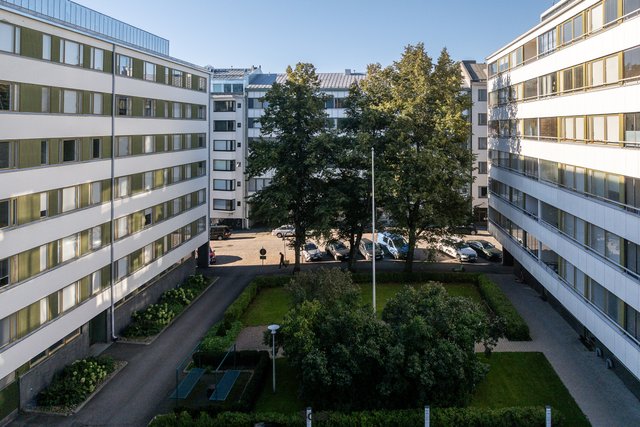 Taloyhtiö on suuri ja sen pihapiiri on viihtyisä. Yhtiöstä löytyy mm. sauna, pesutupa, huoneistokohtainen vinttikomero sekä sähköauton latauspaikkoja. Edullinen hoitovastike - 4 € / m² - sisältää 25 M nettiyhteyden.