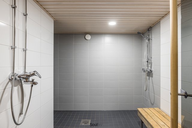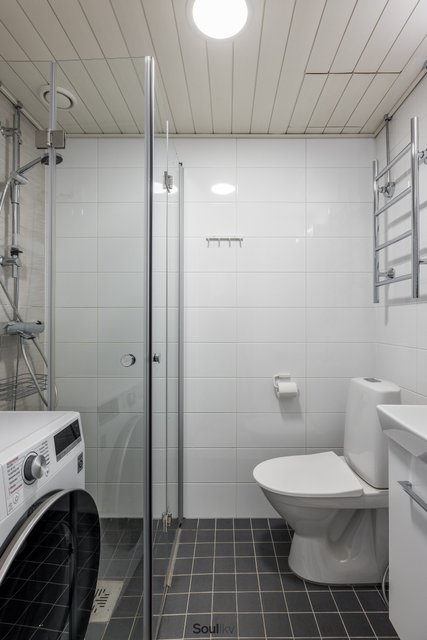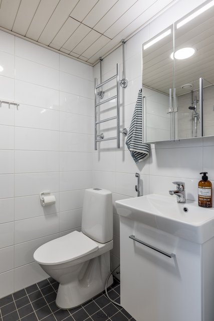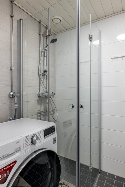 Kylpyhuone on uusittu vuonna 2019 perinteisen linjasaneerauksen yhteydessä. Tilassa on suihkukaappi, lattialämmitys sekä paikka pesukoneelle.