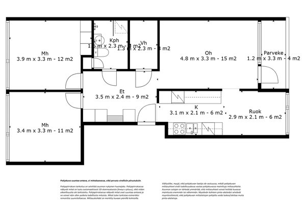 - Yhtiöjärjestyksen mukainen, Isännöitsijäntodistuksen mukainen, (Pinta-ala ei ole tarkistusmitattu ja todellinen pinta-ala voi olla suurempi tai pienempi, kuin ilmoitettu)