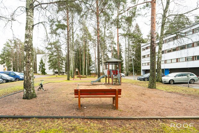 Läheltä löytyvät kattavat palvelut, kuten ruokakaupat, sekä useita päiväkoteja ja kouluja, jotka tekevät arjesta sujuvaa. Liikenneyhteydet ovat erinomaiset, sillä bussipysäkki on vain 200 metrin päässä ja Kehä I:lle pääsee nopeasti.