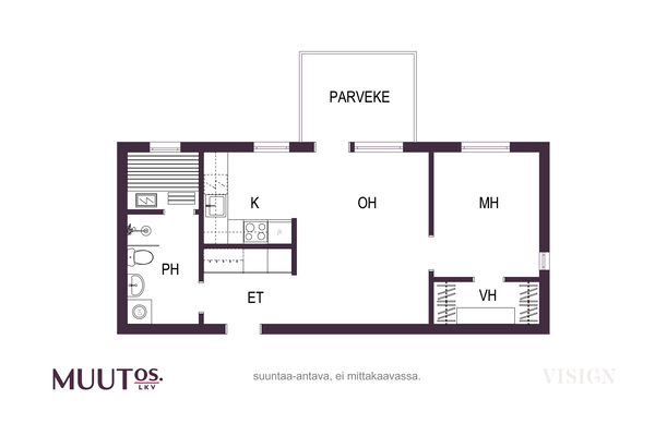- Pinta-alaa ei ole tarkistusmitattu, mitattaessa pinta-ala saattaa olla ilmoitettua suurempi tai pienempi. Huoneiston todellinen pinta-ala voi olla yhtiöjärjestyksessä, isännöitsijäntodistuksessa ja esitteessä mainittua pienempi tai suurempi. Hinta ei ole pinta-alaperusteinen. Yhtiöjärjestyksen mukainen huoneistoselitelmä 2h + kt + s.