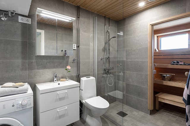- Kokonaan laatoitettu. Suihku, wc, peilikaappi, allaskaappi, bidee-suihku. Pesukoneliitäntä. Lattialämmitys.