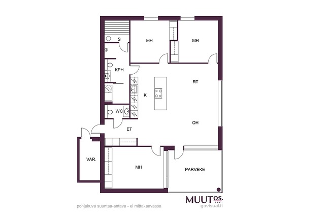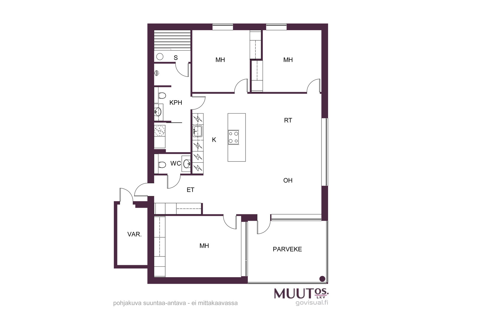 - Huoneiston todellinen pinta-ala voi olla yhtiöjärjestyksessä, isännöitsijäntodistuksessa ja esitteessä mainittua pienempi tai suurempi. Hinta ei ole pinta-alaperusteinen. Pohjapiirroksen mukaan varaston pinta-ala on 4,5 m2 ja lasitettu parveke 11,5 m2, alat eivät sisälly asuintilojen pinta-alaan. Yhtiöjärjestyksen mukainen huoneistoselitelmä: 4h+kt+s