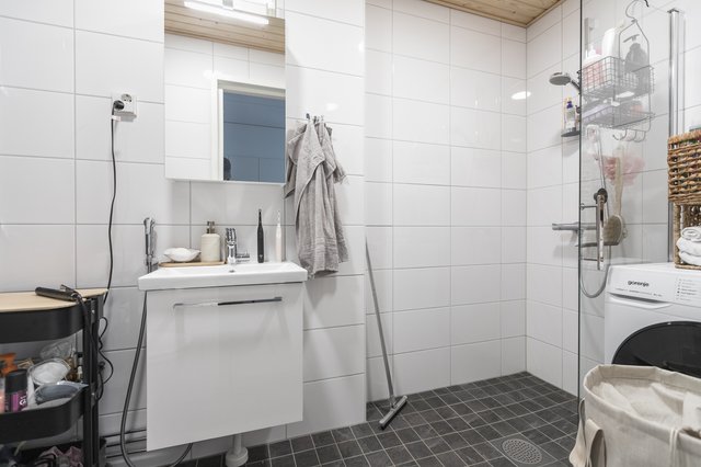 - WC-istuin, suihku, lattialämmitys, ja allaskaappi