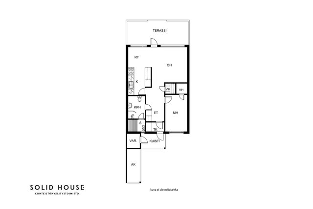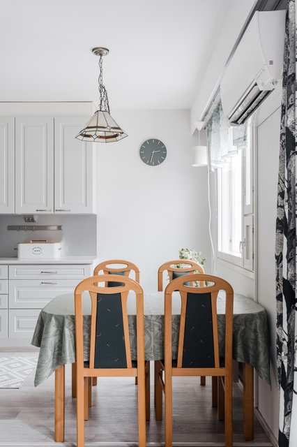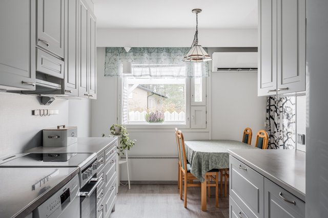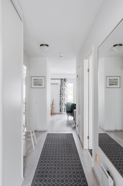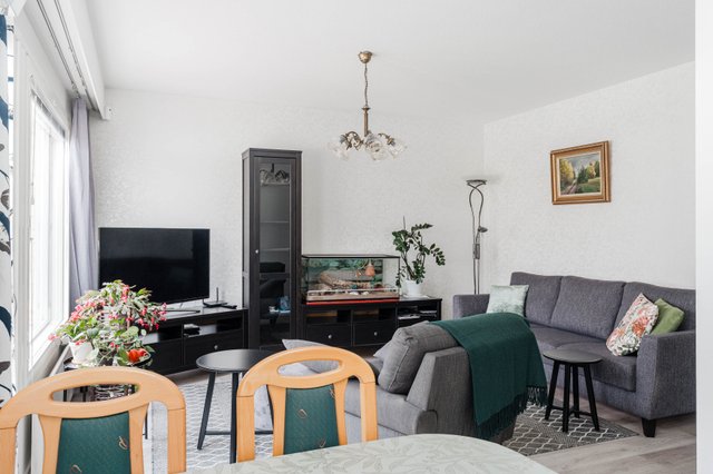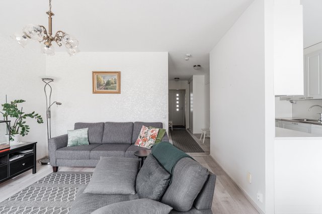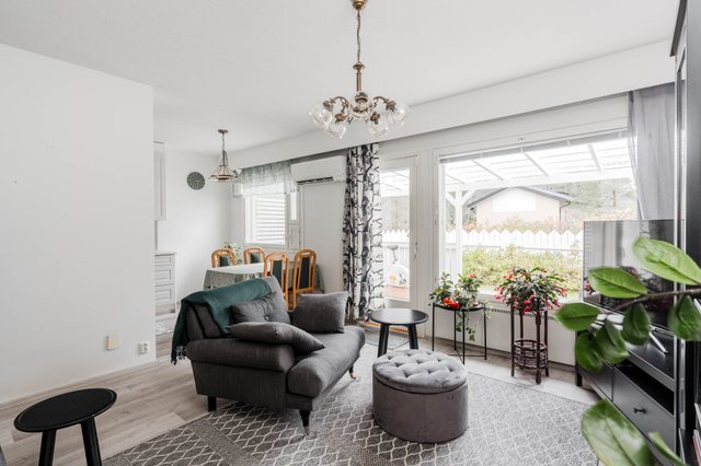 Tämä vuonna 1989 valmistunut, yksitasoinen siistikuntoinen koti on oiva valinta. Asunnon pohjaratkaisu on suunniteltu ja toteutettu toimivaksi, selkeälinjainen ja esteetön koti soveltuu mainiosti myös varttuneemmalle asujalle. Huoneistossa on tehty remonttia 2020, jolloin on mm. toteutettu keittiöremontti (uusittu myös jääkaappipakastin, astianpesukone, keraaminen liesi ja talotuuletin) asuintilojen lattiapinnat uusittu (vinyylilankku), seinät ja katto maalattu, seinäpintoja on myös osin tapetoitu makuuhuoneessa ja olohuoneessa. Lisäksi 2025 on upean ulkoterassin valokate uusittu ja puuosat maalattu. Yhtiön kaikkien huoneistojen saunat ja pesuhuoneet on remontoitu 2017–2018, kylpyhuoneessa on lattialämmitys. Kodin kaksi vaatehuonetta takaavat riittävästi säilytystilaa. Muuttovalmis huoneisto uutta kotia etsivälle.
