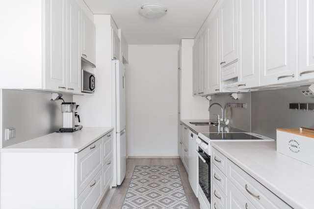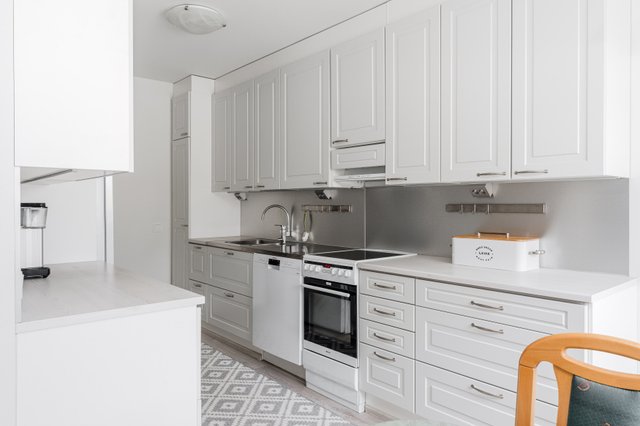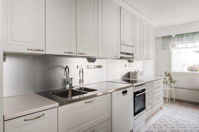 - Jääkaappipakastin, liesi, liesituuletin, ja astianpesukone