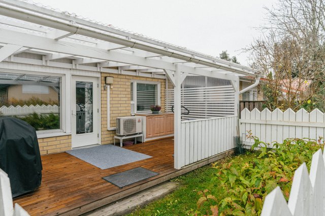 - Osittain katettu terassi, nurmialuetta ja aidattu piha-alue.
