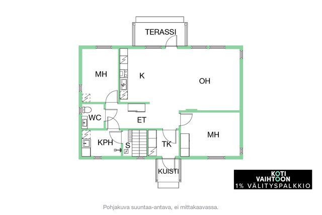 - Pinta-ala ei ole tarkistusmitattu ja todellinen pinta-ala voi olla suurempi tai pienempi, kuin ilmoitettu