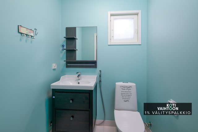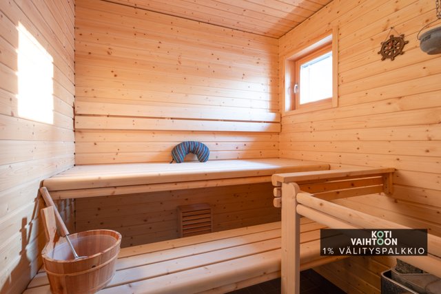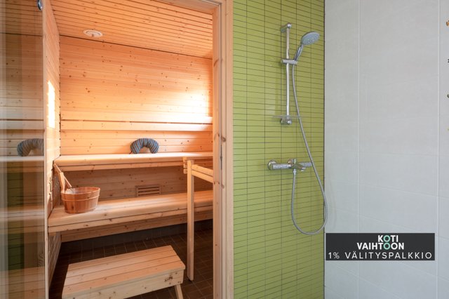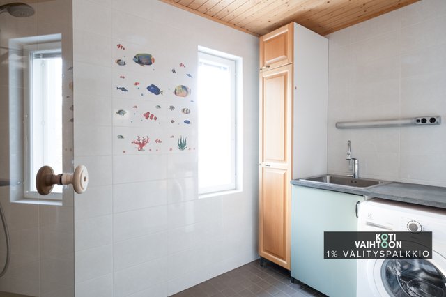 - Suihku, pesukoneliitäntä, lattialämmitys, ja kaapisto