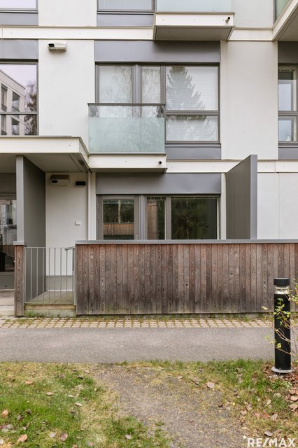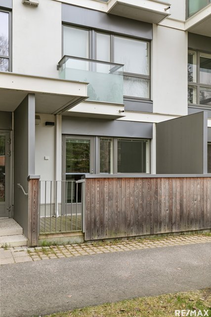 - Maantasossa aidattu terassi, josta käynti portin kautta yhtiön piha-alueelle.