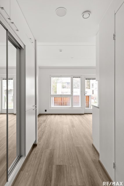 Tässä vuonna 2022 valmistuneessa yksiössä yhdistyvät toimiva pohjaratkaisu, laadukkaat materiaalit ja viihtyisä sijainti Niittykummussa. Asunto sijaitsee talon toisessa kerroksessa, mutta kaltevan tontin ansiosta siitä on kulku aidatulle terassille. Pohjaratkaisu on käytännöllinen ja avara: suuret ikkunat tuovat runsaasti luonnonvaloa sisään ja vaaleat pinnat sitovat tilan yhtenäiseksi kokonaisuudeksi. Keittiö on varusteltu nykyaikaisilla kodinkoneilla ja tarjoaa hyvin työskentely- ja säilytystilaa, ja ruokapöytä mahtuu luontevasti oleskelutilan yhteyteen. Kylpyhuoneessa on harmoninen musta–valko–puu -värimaailma, sadesuihku sekä tila pesutornille huoneistokohtaisen ilmanvaihtokoneen alle. Terassi toimii mukavana jatkeena asumiselle, paikka aamukahville tai lenkille lähtöön.