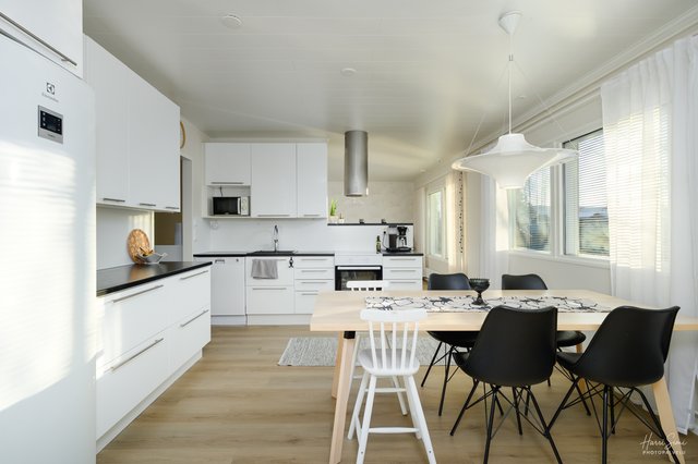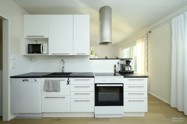 - Tilava ja valoisa keittiö! Osin yhtenäistä tilaa olohuoneen kanssa. Täysin uusittu keittiö. Kodinkoneet: Jääkaappi, pakastin, astianpesukone, induktioliesi ja liesituuletin. Astianpesukone ja induktioliesi ovat uudet. Keittiössä takka ja leivinuuni.