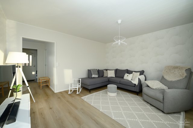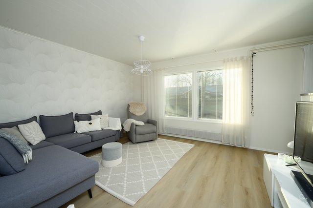 Tässä tulevassa kolmen makuuhuoneen kodissasi on mukavasti tilaa. Olohuone ja uusittu keittiö ovat osin yhtenäistä tilaa. Keittiön tulisijat antavat lempeää lämpöä kotiisi.