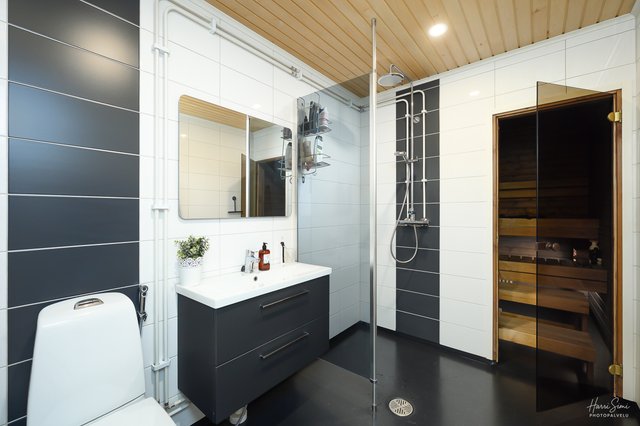 - Siisti uusittu pesuhuone!! Pesuhuoneessa suihku, suihkuseinä, wc-istuin allaskaappi, peili ja lattialämmitys.