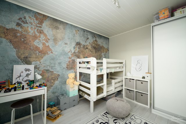 - Seinäpinnat panelia, laattaa, tapettia tai maalipintaa.