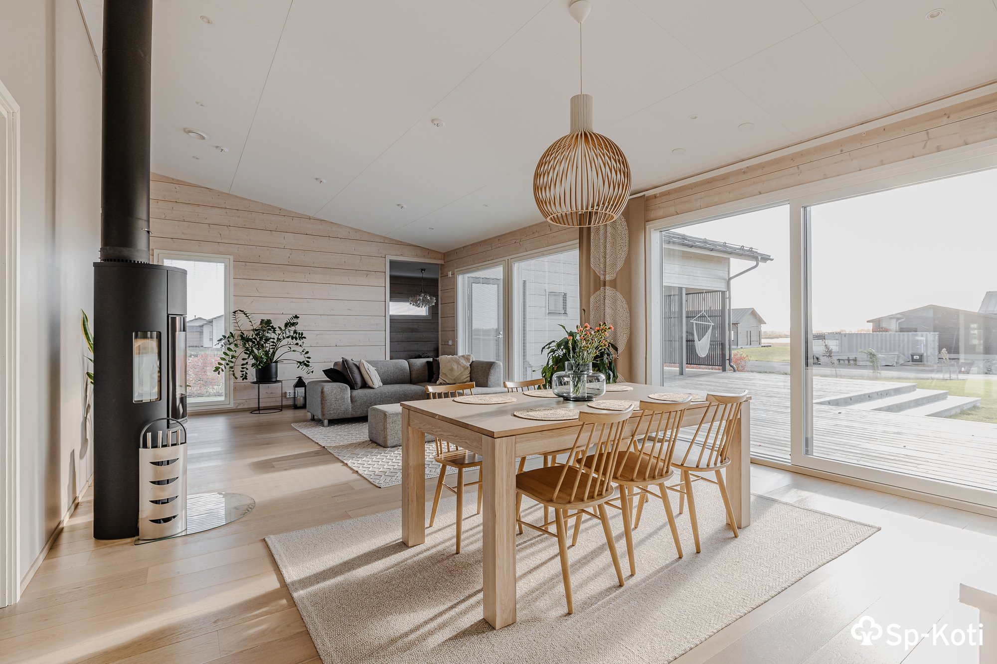 Tämän kodin loistava pohjaratkaisu pitää sisällään kolme makuuhuonetta. Päämakuuhuoneessa arjen ylellisyyttä tuo oma walk In closet vaatehuone. Kolmen makuuhuoneen lisäksi talosta löytyy ns. erillinen tv-huone / oleskeluhuone. Tilava sisääntulo eteinen helpottaa lapsiperhearkea. Erittäin tyylikäs keittiö on varustettu saarekkeella, kvartsitasoin ja laadukkailla Siemensin kodinkoneilla ja viinikaapilla. Ruokailutila yhdistyy saumattomasti keittiöön ja olohuoneeseen, luoden avaran tilan yhteisille hetkille. Korotetut sisäkatot ja isot ikkunat tekevät tiloista avaran ja valoisan. Kodinhoitotiloissa reilusti kaappi- ja tasotilaa, paikka pesutornille ja oma ulko-ovi. Erillisen wc:n lisäksi pesutilojen yhteydessä myös wc-istuin. Pesutilojen yhteydestä löytyy myös oma sauna, jossa arjen huolet ja murheet unohtuvat hetkessä. Takapihalla runsaasti avointa, että katettua oleskelutilaa – ja lisäksi tilava erillinen lasitettu terassi.