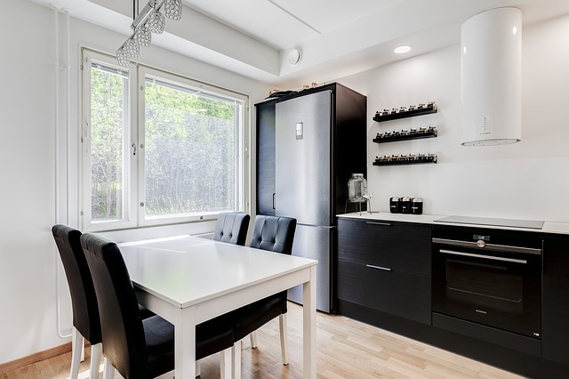 - Jääkaappipakastin, astianpesukone, liesi, uuni, liesituuletin, ja mikroaaltouuni