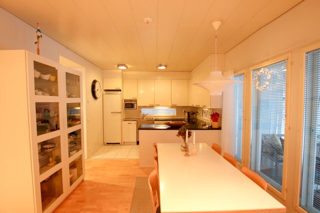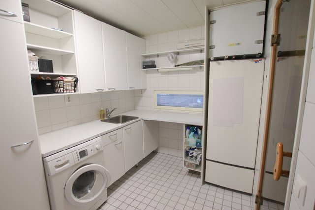 - Pesukoneliitäntä, lattialämmitys, lattiakaivo, pyykkikaapit, pesuallas, pöytätaso, ja keskuspölynimuri (Ei toimi)