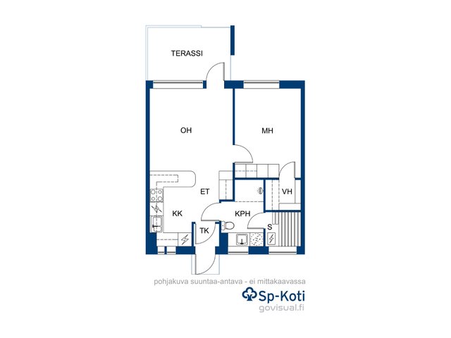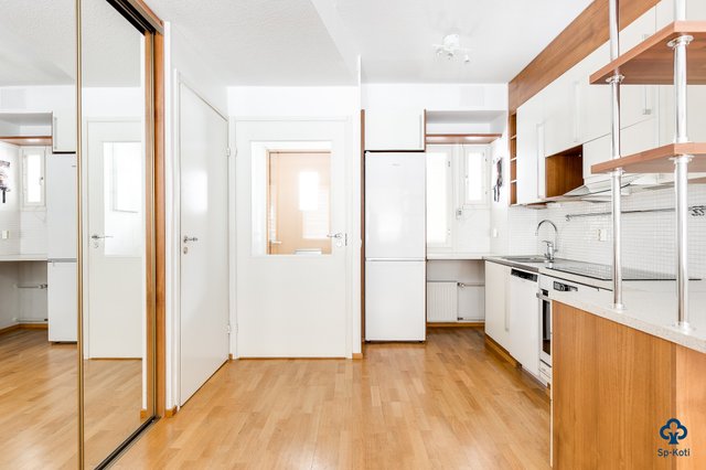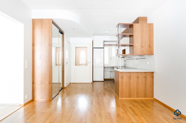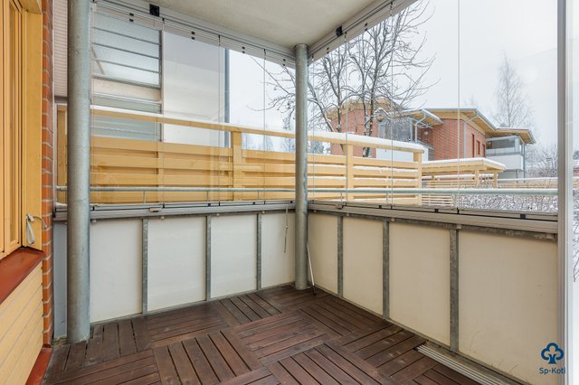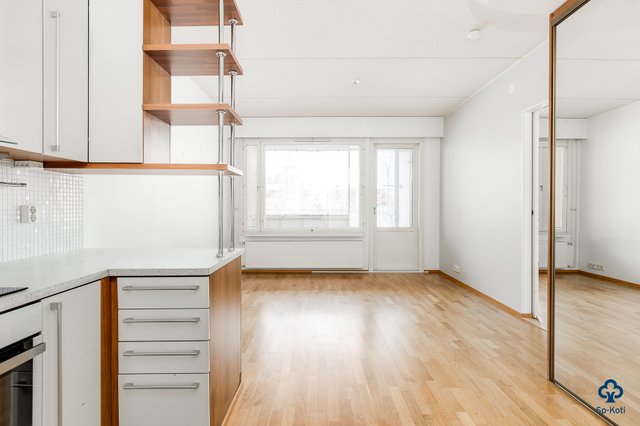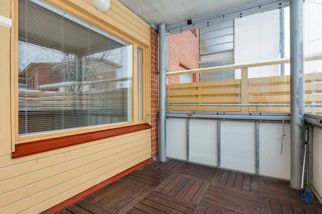 Asunnon pohjaratkaisu on poikkeuksellisen toimiva. Keittiö ja olohuone muodostavat yhtenäisen, valoisan oleskelutilan, josta on suora kulku omalle lasitetulle terassille. Lasitettu terassi tuo asumiseen aivan oman lisäsävynsä: se toimii lisähuoneena aikaisesta keväästä pitkälle syksyyn sekä kutsuu nauttimaan rauhallisesta pihapiiristä ja pieni oma piha mahdollistaa vaikka kasvien kasvattamisen. Tilava makuuhuone, jossa on erillinen vaatehuone, tarjoaa runsaasti säilytystilaa ja helpottaa arjen järjestystä. Kylpyhuoneeseen mahtuu näppärästi myös pyykkihuolto, ja oma sauna viimeistelee kodin arjen ylellisyyden. Vaaleasävyinen ja ajaton värimaailma antaa loistavat puitteet erilaisille sisustusratkaisuille.