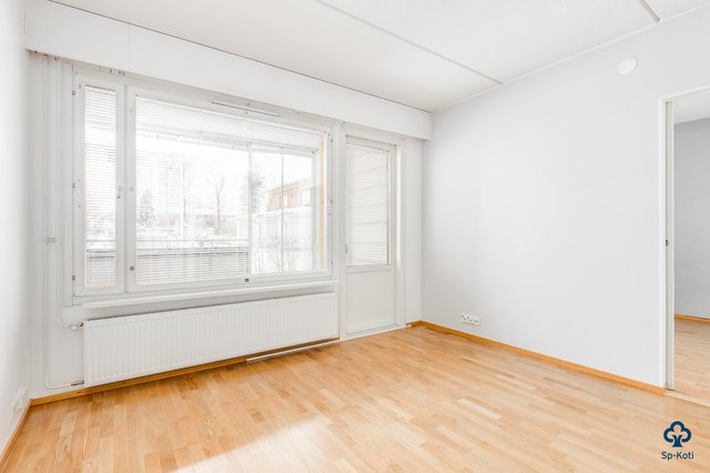 - Keittiön pienestä ikkunasta näkymä kadulle, olohuoneen sekä makuuhuoneen näkymät sisäpihalle