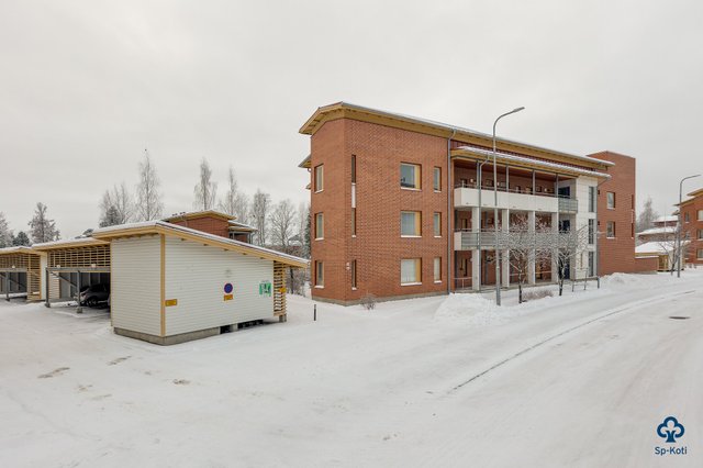 Auto säilyy tuulelta ja tuiskulta suojassa omassa katospaikassa. Autopaikka myydään erillisinä osakkeina, Vmh 5000 €.