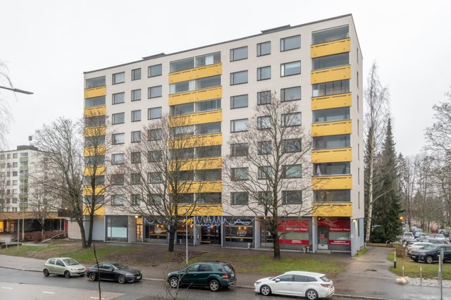 Viihtyisä ylimmän 8/8 kerroksen kaksio, jossa on oikeasti tilan tuntua. Keittiössä on valkoiset, kertaalleen uudistetut kaapistot. Makuuhuone on todella tilava; sängyn lisäksi sinne mahtuu hyvin vaikka työ- tai vauvanhoitopiste. Siellä on myös mukavasti säilytystilaa. Olohuoneeseen mahtuu hyvin sohvaryhmän lisäksi vaikka erillinen ruokailuryhmä. Kylpyhuone on remontoitu putkiremontin yhteydessä.