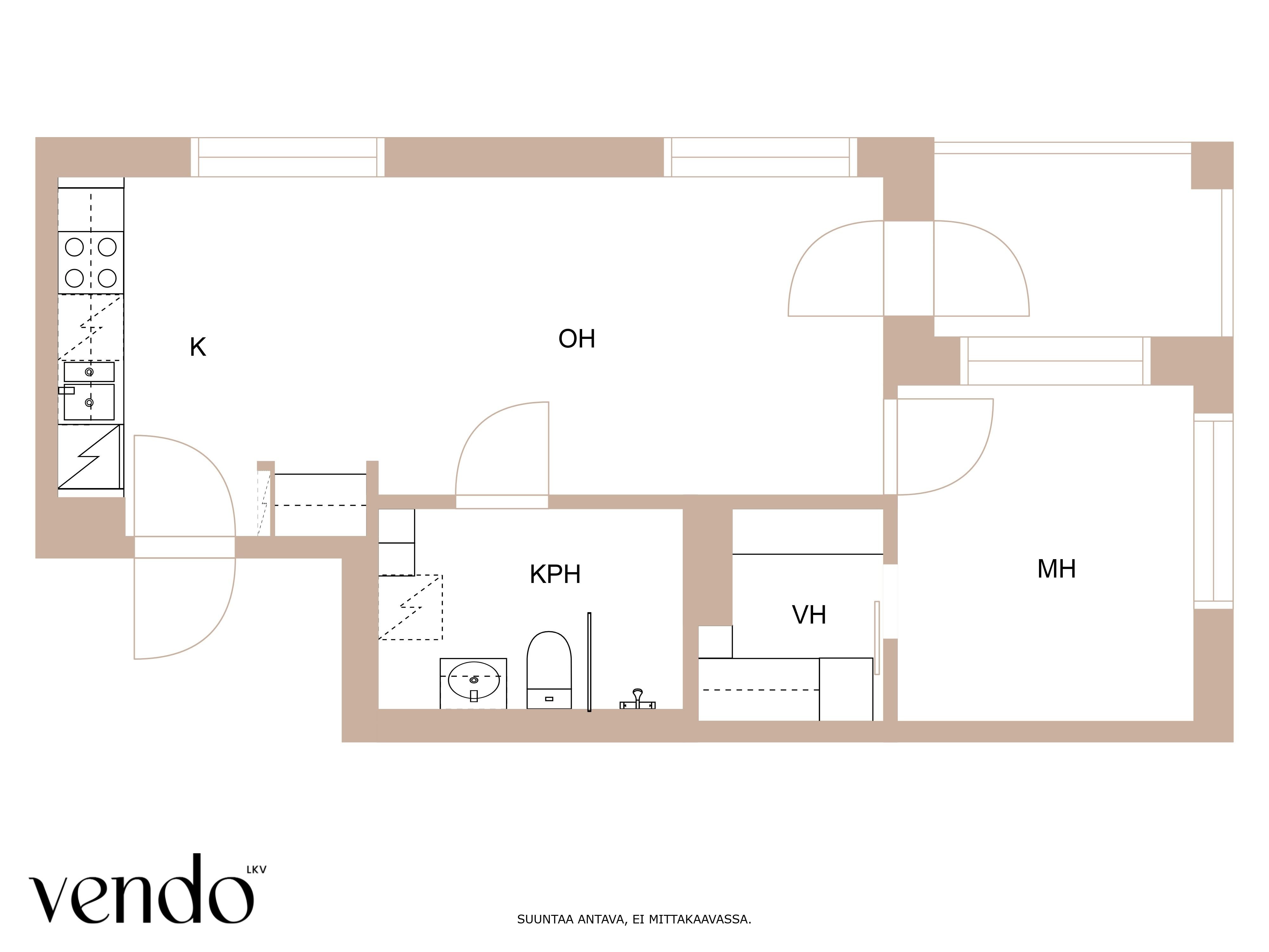 - Jääkaappipakastin, erillisuuni, liesi, astianpesukone, ja liesituuletin