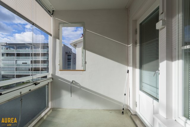 - Keittiö, pohoiseen. Olohuone ja parvekeet etelään taloyhtiön sisäpihalle päin.