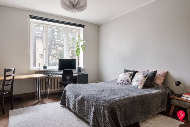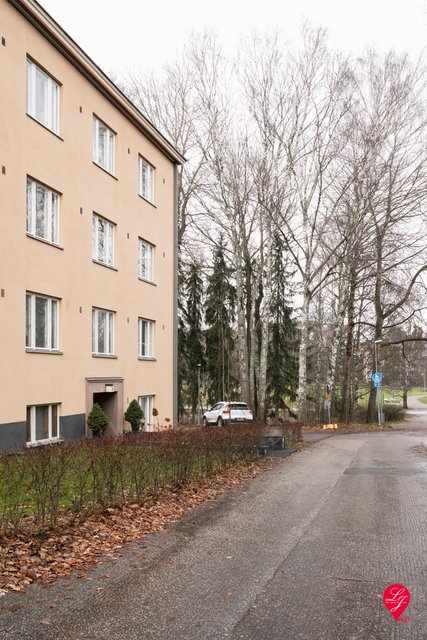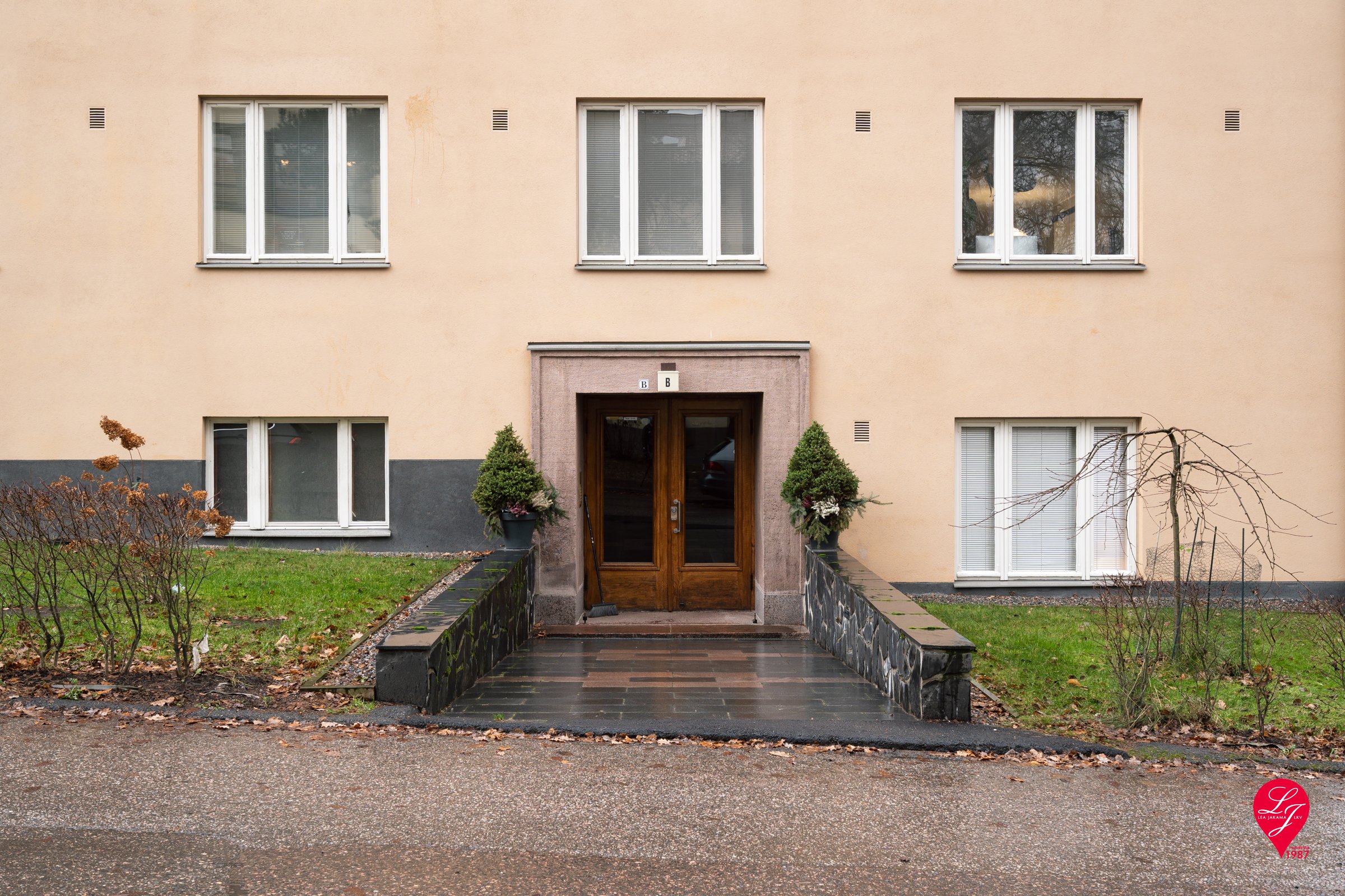 Vanhassa Munkkiniemessä, puistoalueen laidalla kaunis kaupunkikoti vehrein avarin maisemin. Arkkitehti Helge Lundströmin suunnittelema elegantti, rapattu talo on valmistunut vuonna 1937. Taloyhtiön vehreä, paikallisessa pihakilpailussa palkittu piha runsain istutuksin tarjoaa viherpeukalolle mahdollisuuden osallistua halutessaan puutarhan hoitoon.