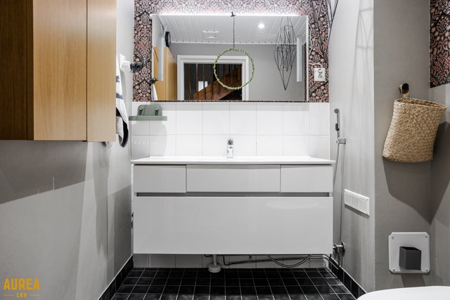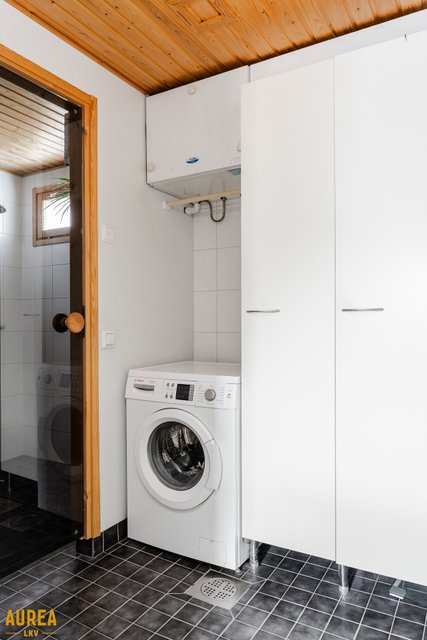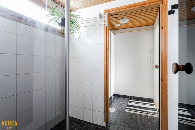 - Yläkerrassa kylpyhuone, sauna ja erillinen khh. Kodinhoitotilassa liitännät pyykinpesukoneelle. Silikonisaumat uusittu 2025.