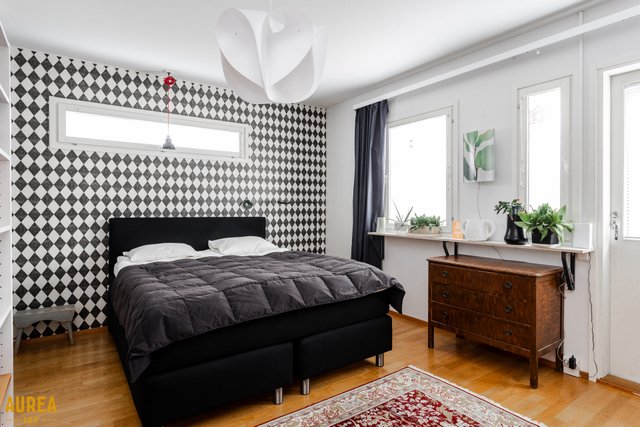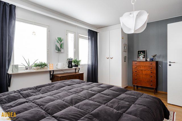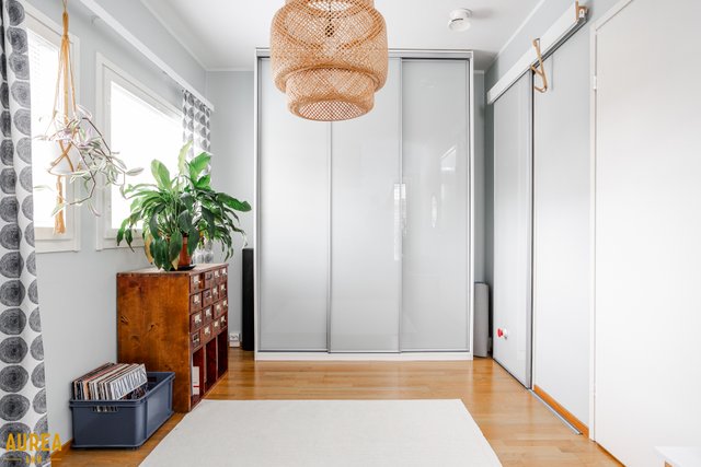 - Kolme makuuhuonetta. Kahden yhteydessä vaatehuone sekä kiintokaapistot. Seinät: maali,/tapetti, lattiat parketti, katto maali. Päämakuuhuoneen yhteydessä parveke.