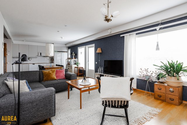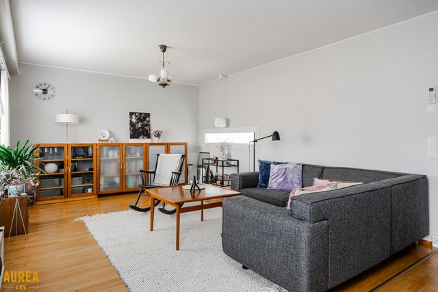 - Todella tilava ja valoisa olohuone, josta käynti takapihan terassille. Seinät: maali/tapetti, lattiat parketti.